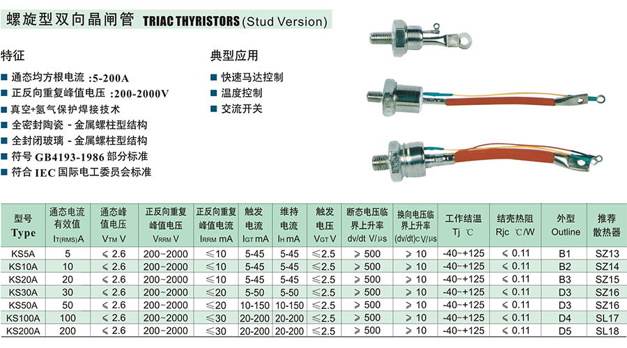 螺栓型雙向晶閘管