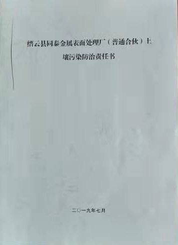 縉云縣同泰金屬表面處理廠(普通合伙)土壤污染防治責任書